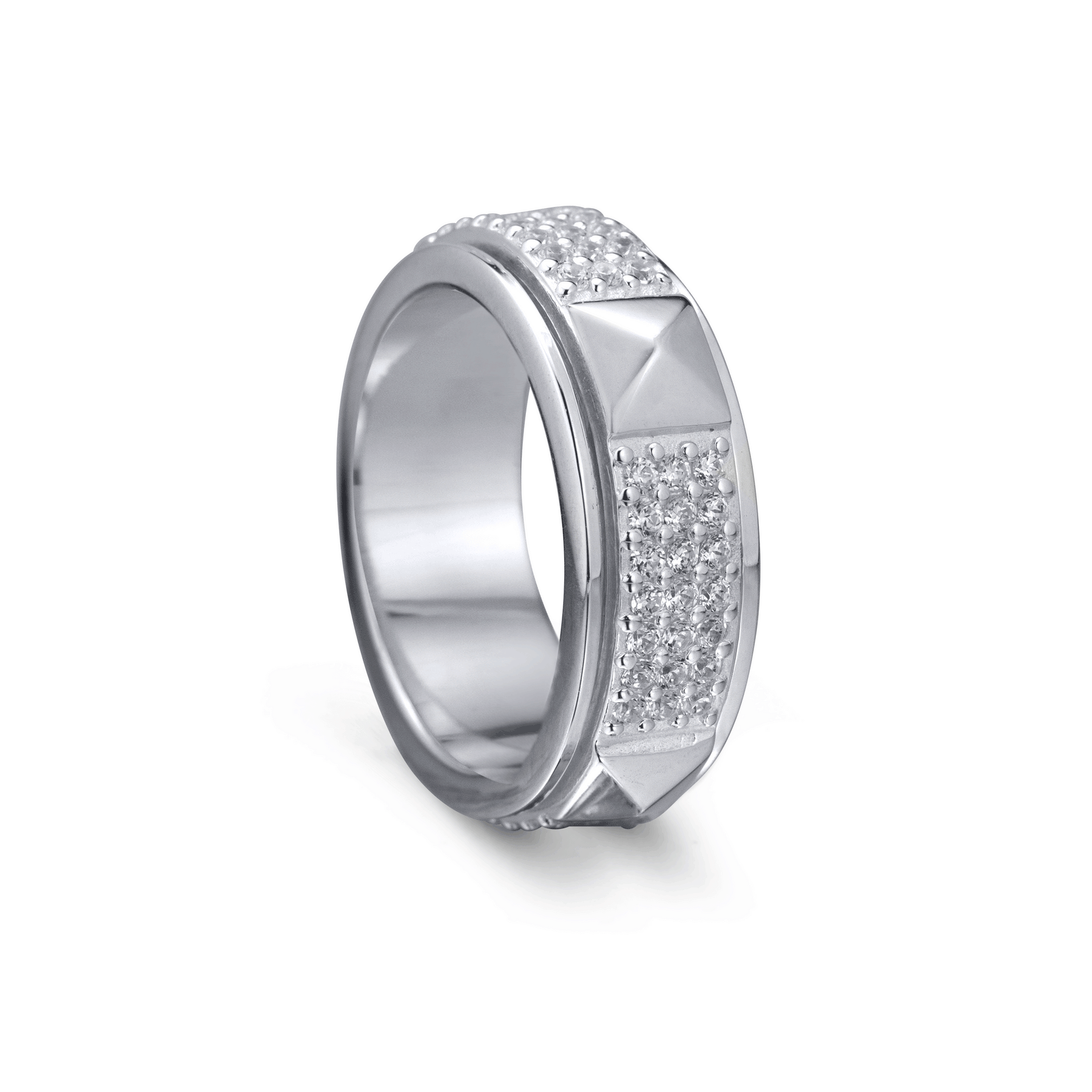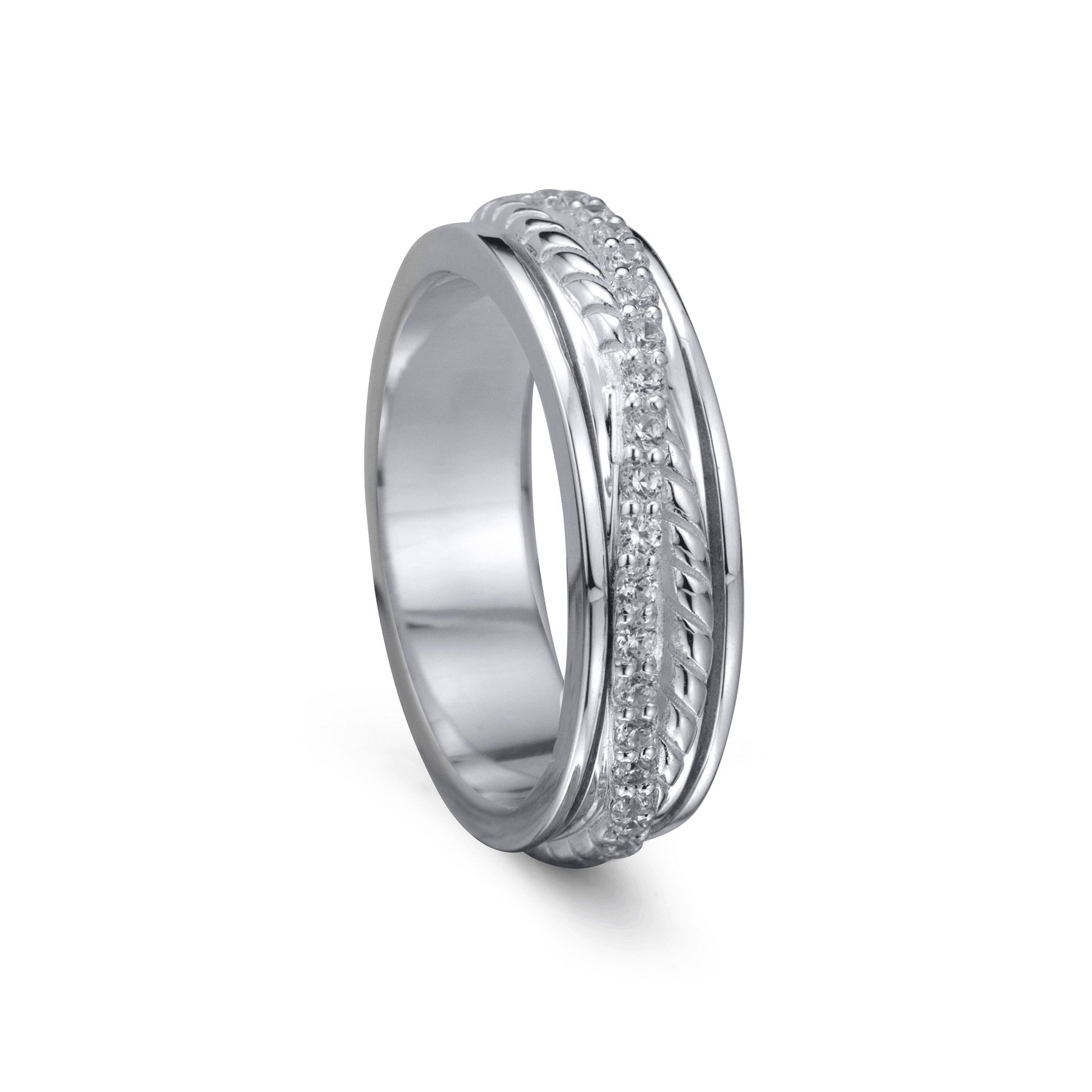 Sterling Silver Meditation Ring with CZ center spinning band, and a genuine Amethyst Gemstone. Stack them any way you like, these versatile fun Meditation Rings can be worn in many different ways! Includes complimentary MeditationRings Tin & Travel Pouch.